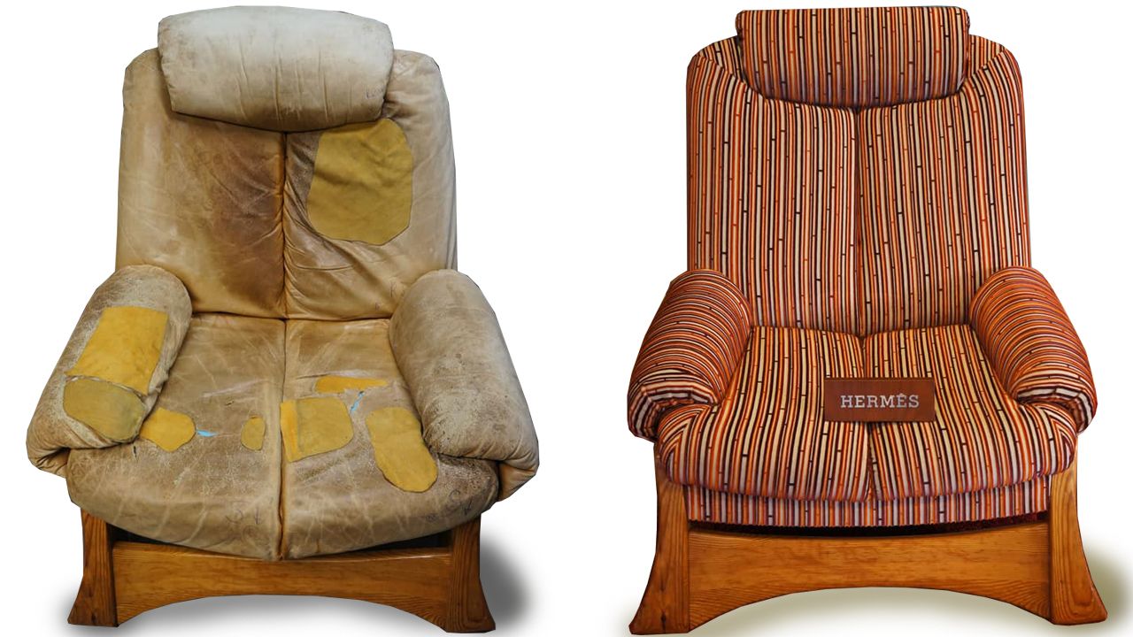 Der hatte ihm dort immer Geschichten vorgelesen hatte. Der frische Stoff "Up and Down" von HERMÈS passt vorzüglich zum Stil des Möbels und kommt nach sorgfältiger Aufarbeitung der Polsterung und des Holzgestells gut zur Geltung.