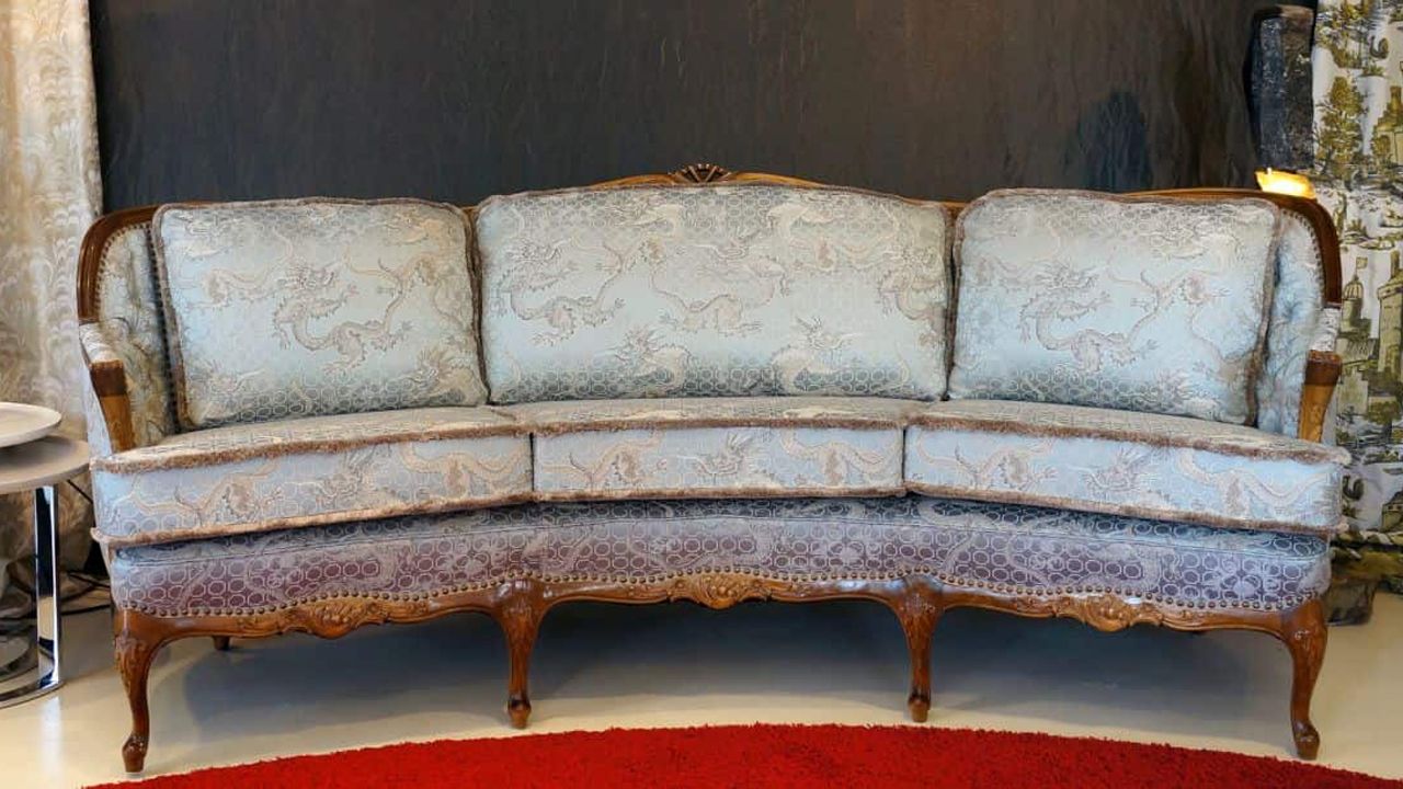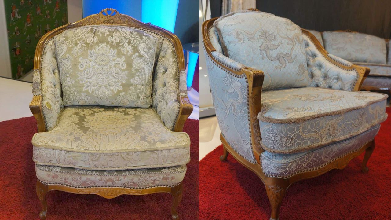 Der Stoff "Royal Dragon Mingh" von Meissen steht für diskreten europäischen Luxus und wurde über das ganze Möbel mit klassischen Ziernägeln festgeschlagen. Die Armlehnen und Rückeninnenseiten der Sitzmöbel weisen eine aufwendige Rautenheftung auf und zur perfekten Abrundung wurde ein klassisches Posament "Effilee" als Nahtabschluss verwendet. Eine sehr aufwendige und sorgfältige Arbeit, die unsere Polstermeisterin auch heute noch mit Stolz erfüllt und den Kunden in verzücktes Staunen versetzt hat. Kunde: privat · Was wir gemacht haben: Beratung/Polsterarbeiten